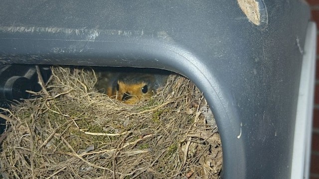 Nicht so unser Gast: für sein Nest suchte sich unser Rotkehlchen die belebte Terrasse der Blauen Gruppe, direkt in der wandmontierten Schlauchbox. Ein großes Erlebnis für unsere Kinder! Wenn man ganz genau in die Einflugschneise schaut, sieht man direkt in das Gesicht der brütenden Eltern. Wir freuen uns schon jetzt, wenn die Rotkehlchen schlüpfen und gefüttert werden. So hautnah konnten wir noch nie unsere Gartennachbarn beobachten.