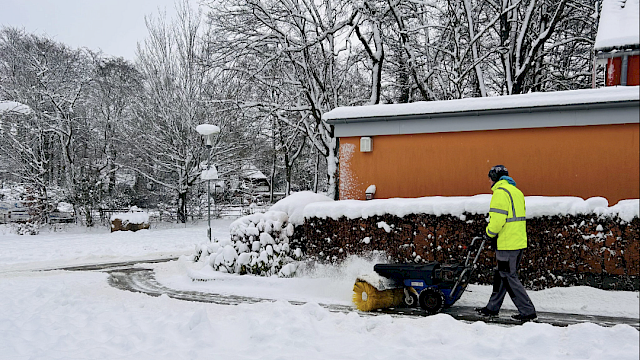 Gefühlt rund um die Uhr ist Herr Klein im Einsatz. Mit Schneeschaufel, Schneebürste, Streuwagen und viel Engagement sorgt er dafür, dass die Wege rund um die Schule geräumt und gestreut sind. Ob früh am Morgen oder zwischendurch – sein Einsatz trägt entscheidend dazu bei, dass Kinder, Lehrkräfte und Eltern die Wege sicher nutzen können.