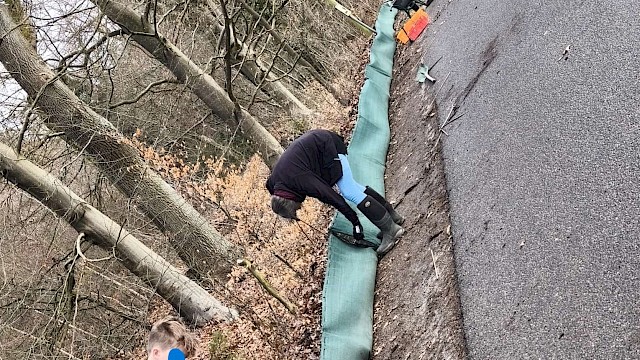 Auch in diesem Jahr haben die naturschutzbewegten Ehrenamtlichen die Amphibienschutzzäune Ende Februar aufgebaut. Wie schon vor vielen Jahren einmal am Riesenbett gab es an der Waldwiese ja leider im letzten Jahr durch die Forstarbeiten im angrenzenden Wald einen großen Einbruch in der Population der Erdkröten. Auch in diesem Jahr ist dort wohl noch nicht mit einer schnellen Erholung der Art zu rechnen. Dafür gibt es an diesem Ort noch einige Molcharten, für die am Riesenbett bereits die Auslöschung wahrscheinlich wird. So hat sich die an der Waldwiese engagierte Gruppe nach kurzem Zweifel am Sinn der Aktion wieder für den Zaun-Aufbau und die anschließende doch immer intensive Betreuung des Zaunes entschieden.