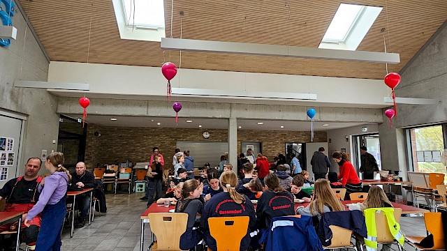 Nach getaner Arbeit treffen wir uns in der Mensa der Alfried-Otto-Schule. Dort geben Walter Peters und sein Team der AWO Dassendorf einen kleinen Imbiss und Getränke für alle fleißigen Sammelnden aus. So findet in gemütlicher Runde das gemeinsame Tun einen geselligen Abschluss.