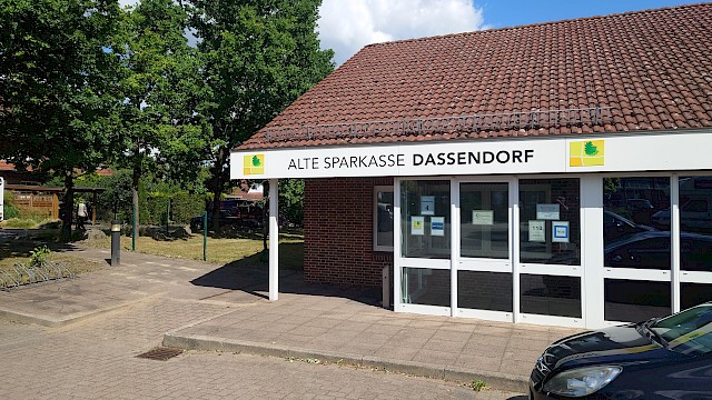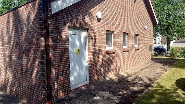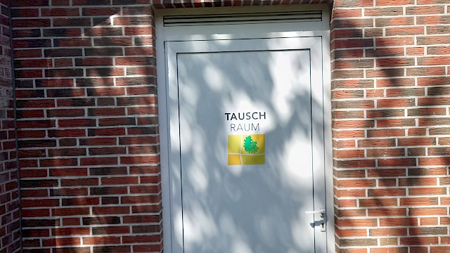 Der Tauschraum befindet sich in der Alten Sparkasse (Sperberweg 4) und ist im östlichen Teil des Gebäudes (rechts) von einer Außentür separat zu erreichen.
