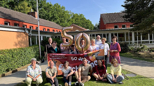 Rückblickend waren wir in den vier Jahren hier an der Grundschule in einer kleinen, heilen Welt geborgen, in der wir unserem Klassenlehrer Herrn Kiehn wirklich wichtig waren. Auf dem Schulhof konnten wir spielen und toben und verbindliche Verabredungen treffen, denn es hatten noch nicht einmal alle Telefon. Natürlich haben wir auch mal Unfug gemacht, aber es war nie etwas Ernstes. Wir sind dankbar, dass wir ohne Handys aufwachsen durften, freuen uns jetzt aber über unsere WhatsApp-Gruppe. Wir sehen uns wieder, wahrscheinlich nächstes Jahr bei den 3 tollen Tagen!